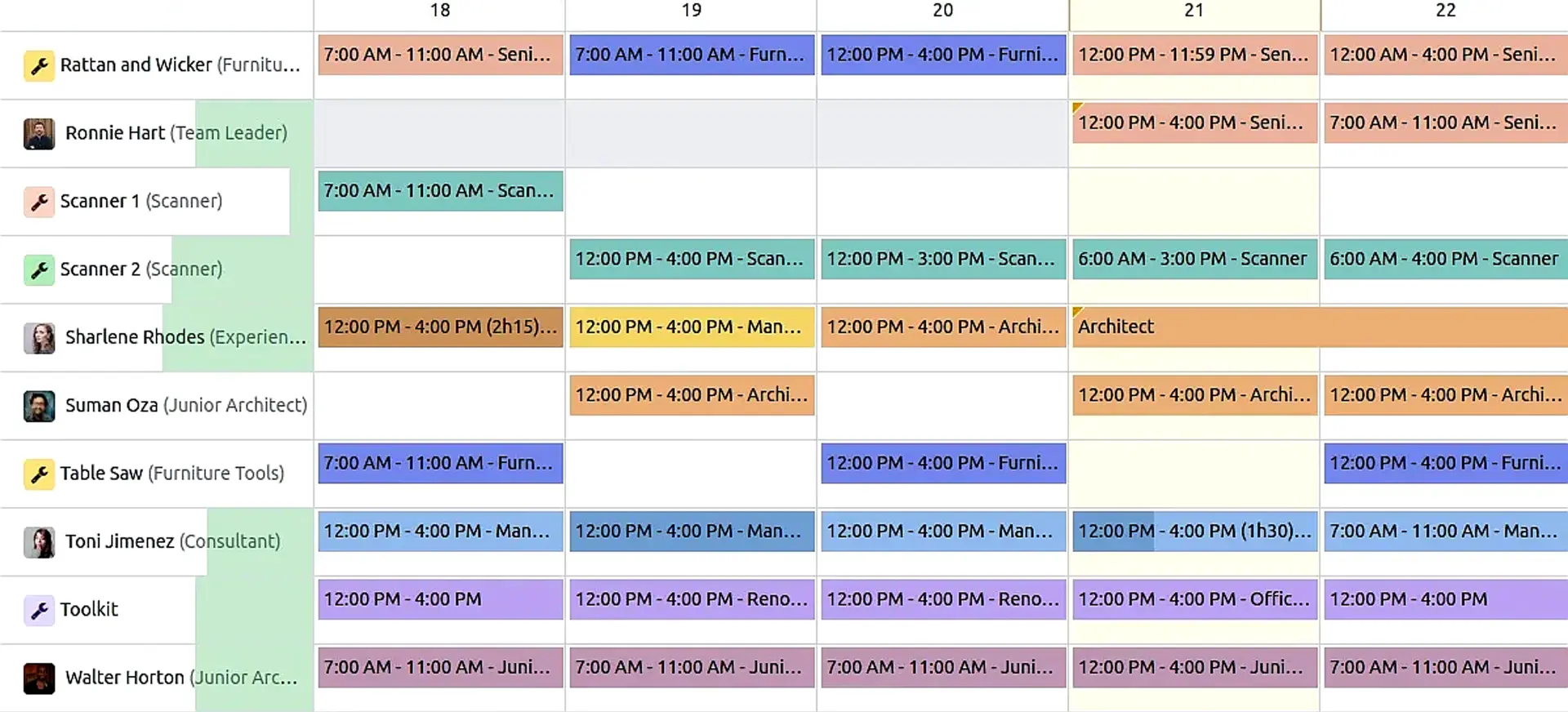 Centralized planning. Create shifts for colleagues as well as material resources. Use auto-planning, recurring shifts, templates, and roles to maximize efficiency.