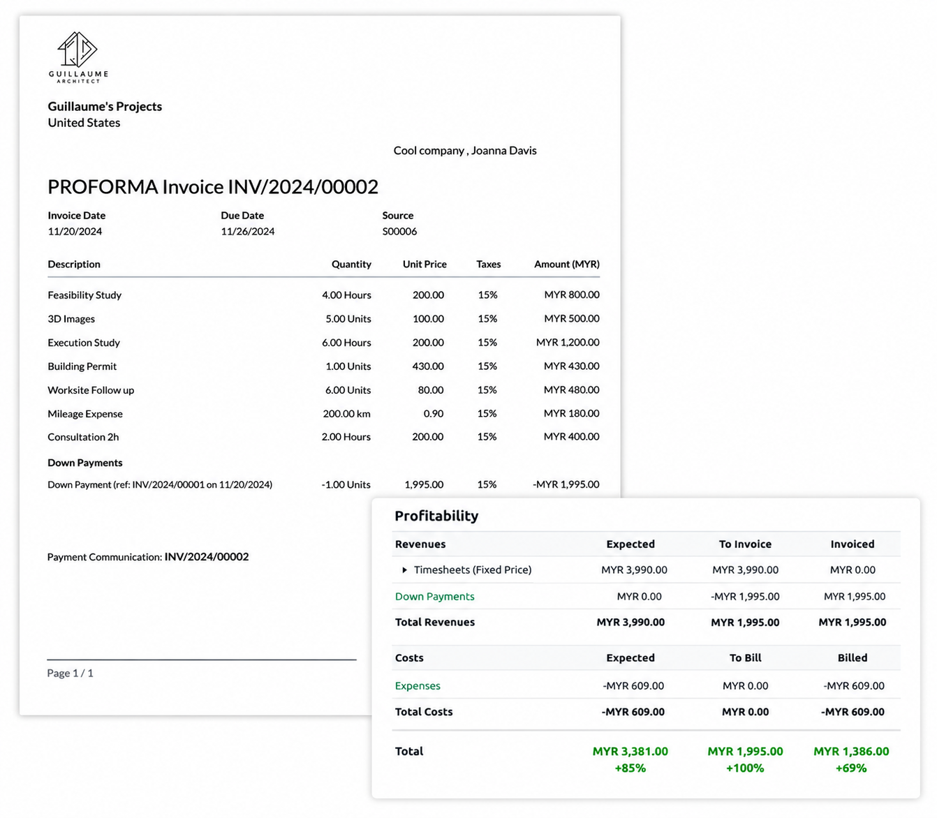 Analytical breakdowns on your project's dashboard to manage costs and revenues, keeping an eye on each project's profitability.