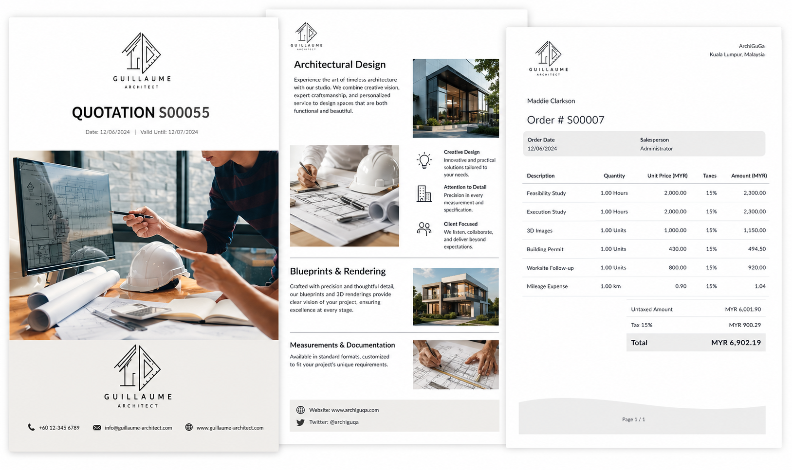 Quotation templates save time thanks to a built-in set of architectural products and services.