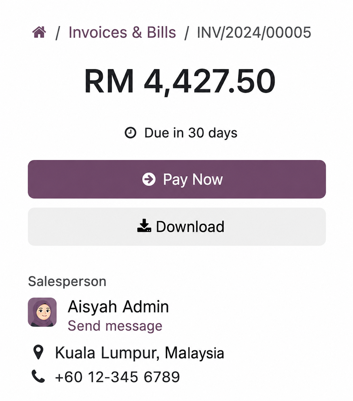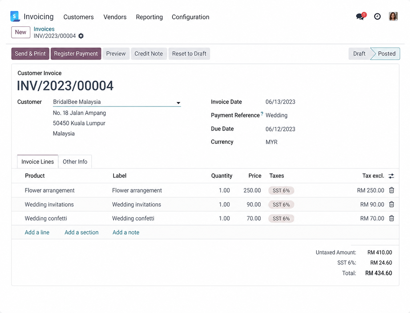 Because it’s Odoo, your invoices automatically update your stock levels and feed directly into your Accounting module—no double entry required.